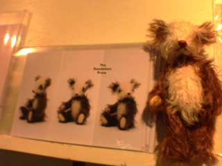今回の個展のテーマ「ポストカードになったベア」をカードと本ベアとを見比べていた所、