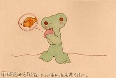 真剣に雑誌に見入っていたかえるです。
