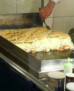 お好み焼きを作るおっちゃんが、いい感じで職人風でしたので並んでみました。