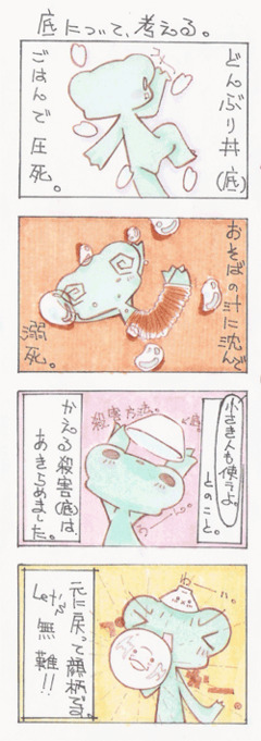 というわけで、一週して「いつもの顔」と「にんやりの顔」でどんぶり作成。