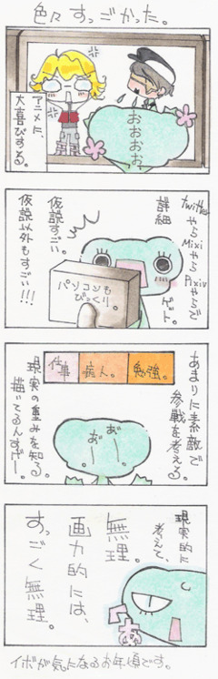 素敵サイトとミクシィと、pixivのお勧めサイトをぐるり一周する頃には、