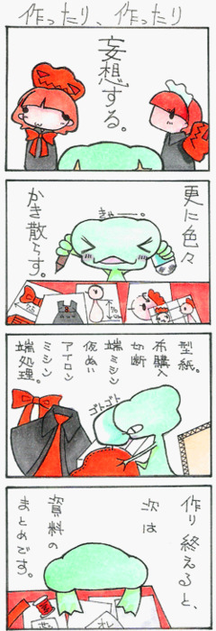 縫い上げるまでは、毎晩夢の中でも布を曲げたりひっくり返したりもします。