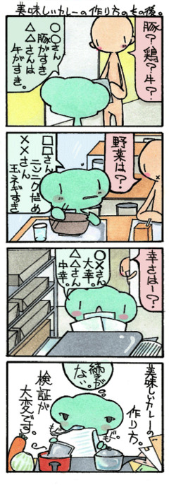 連日のカレーの試食は日に日に迷走を深め、各人の「美味しい」の定義も見失って行きます。