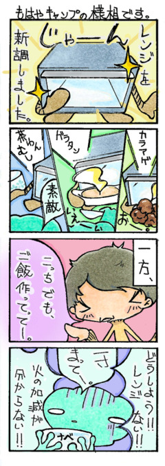もはやキャンプ場にて、薪を割りつつ火をつけては執り行う飯盒すいさんの様な